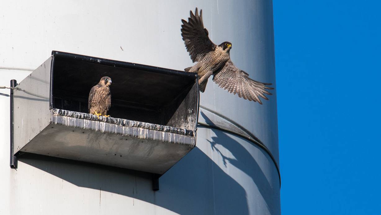 An einem Gütersloher Windrad brüten Wanderfalken und sind deshalb ein Streitfall