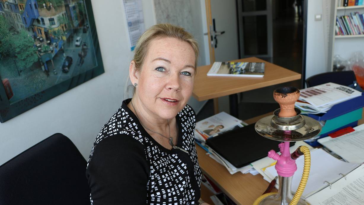 Kennt die Gefahren: Kriminaloberkommissarin Vanessa Ogan - hier mit einer bei Jugendlichen beliebten Wasserpfeife - unterstützt Schulen bei Konzepten gegen die Sucht. | © Anja Hustert