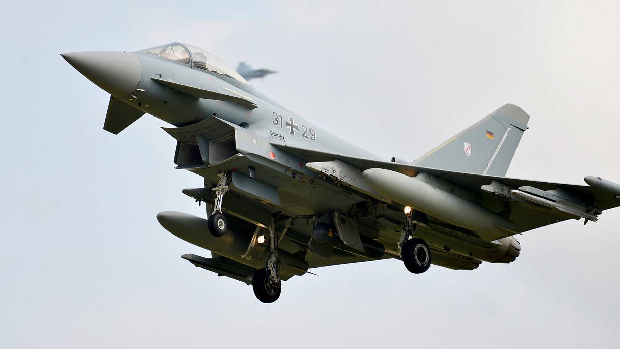 Das Bild zeigt das Kampfflugzeug Eurofighter Typhoon. In Gütersloh waren am Montag Kampfflugzeuge vom Typ Tornado im Einsatz. | © picture alliance / Jens Niering