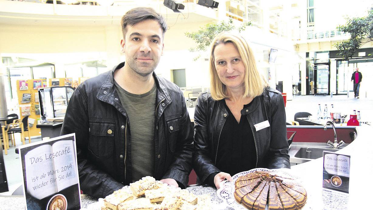 Lorans Maroki hatte zu seiner Vorstellung, auch zur Freude von Bibliothekschefin Silke Niermann, Streusel- und Marmorkuchen gemacht. | © Ludger Osterkamp