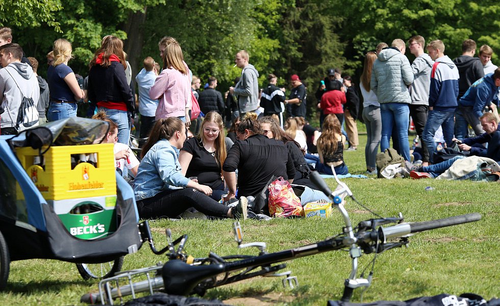 Gütersloh. Obwohl es in diesem Jahr deutlich weniger Besucher waren, strömten am 1. Mai wieder Tausende Jugendliche zu den Dalke-Auen, um gemeinsam zu feiern. Polizei und Ordnungsamt hatten bereits im Vorfeld angekündigt, mit verstärkten Kräften vor Ort zu sein. Um zu verhindern, dass die Besucher laute Soundsysteme mitbringen, führten Mitarbeiter eines Security-Dienstes am Eingang Zugangskontrollen durch.