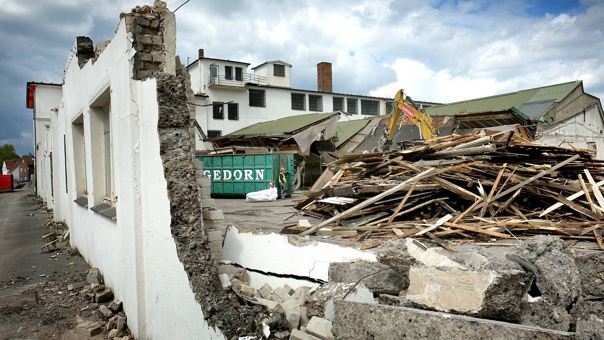 Denn seit Ende April ist das Abbruchunternehmen Hagedorn mit schwerem Gerät dabei, Häuser und Hallen auf dem Gelände des ehemaligen Bürobedarfsgroßhändlers B + R abzureißen. Renaturieren oder Rückbau nennen sie das bei Hagedorn, umgangssprachlich müsste es „dem Erdboden gleichmachen" heißen.