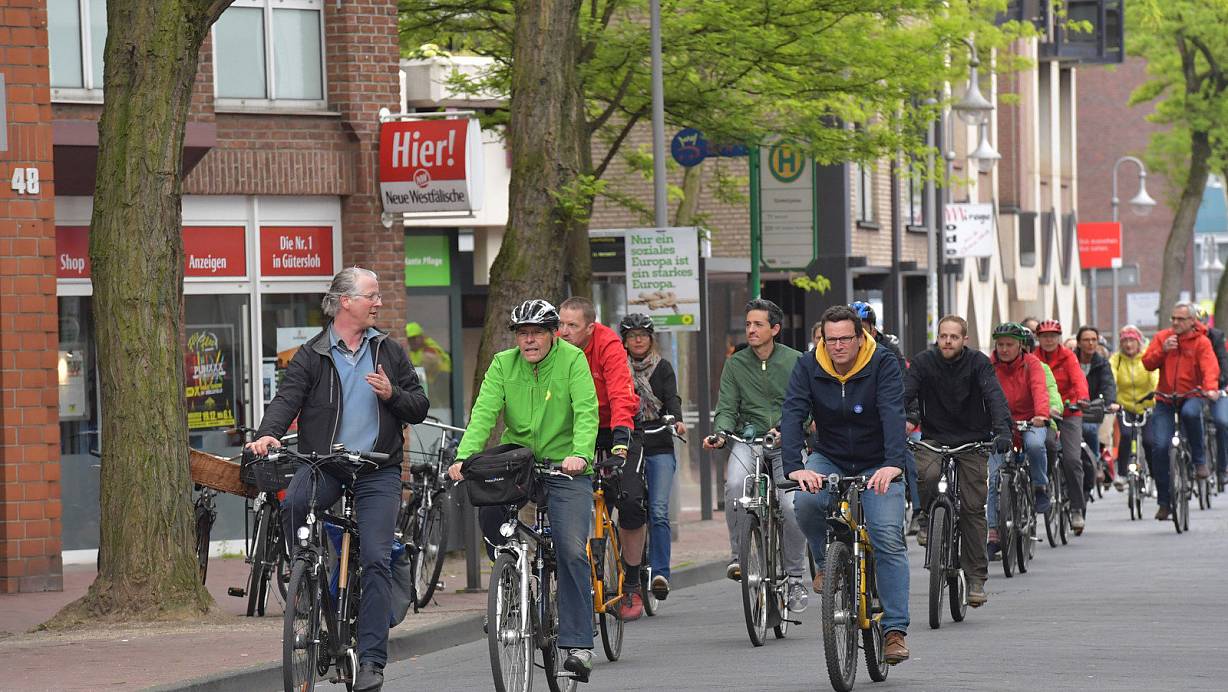 Gütersloh. Die Botschaft einer gut 200 bis 250 Meter langen, munter klingelnden Fahrradfahrer-Karawane war unüberseh- und unüberhörbar: Die Zeit ist nach Ansicht der Teilnehmer reif für die Verkehrswende und für mehr Rechte von Fahrradfahrern im Alltag. Auch in Gütersloh. Genau so fiel das Fazit einer im Vorfeld viel diskutierten Aktion auf den Ein- und Ausfallstraßen rund um die Innenstadt aus.