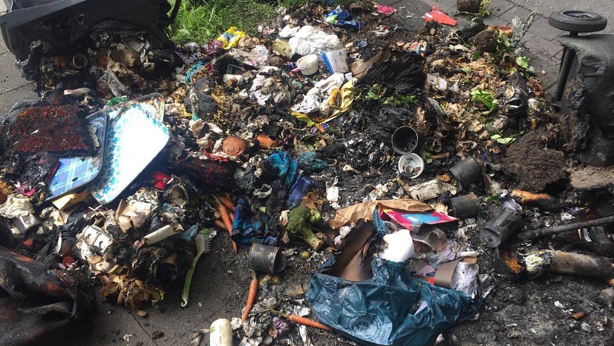 Die stinkenden Inhalte liegen verstreut an der Straße - die Polizei sucht Zeugen