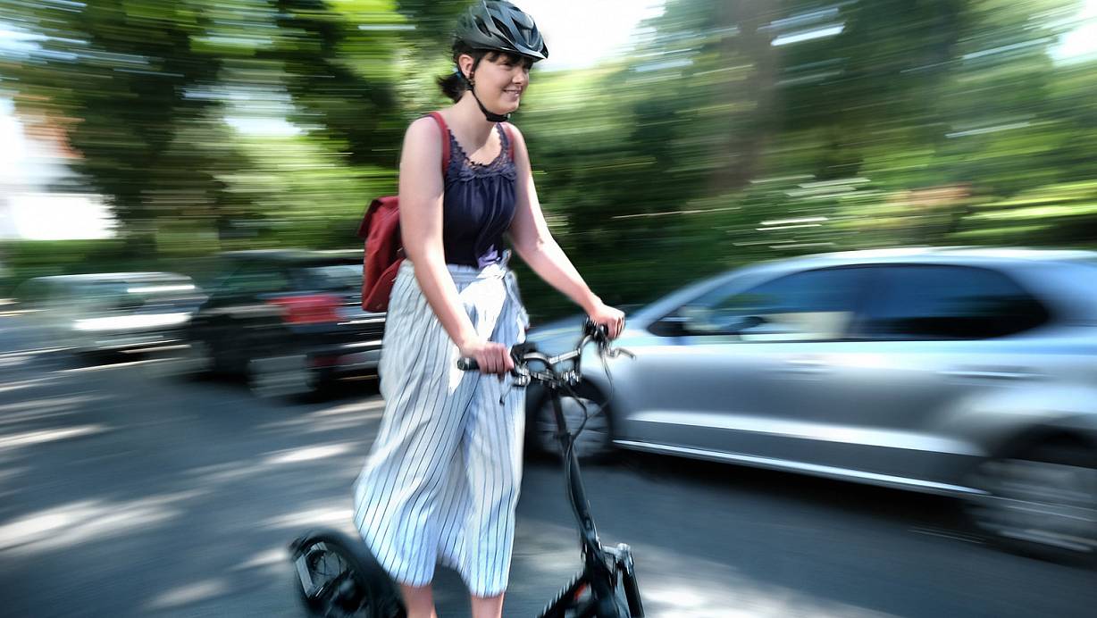 Selbstversuch: Wir haben uns beim Fahrradgeschäft Wulfhorst einen Scooter geliehen und damit in den Gütersloher Straßenverkehr gewagt. Wie reagieren die anderen Verkehrsteilnehmer?