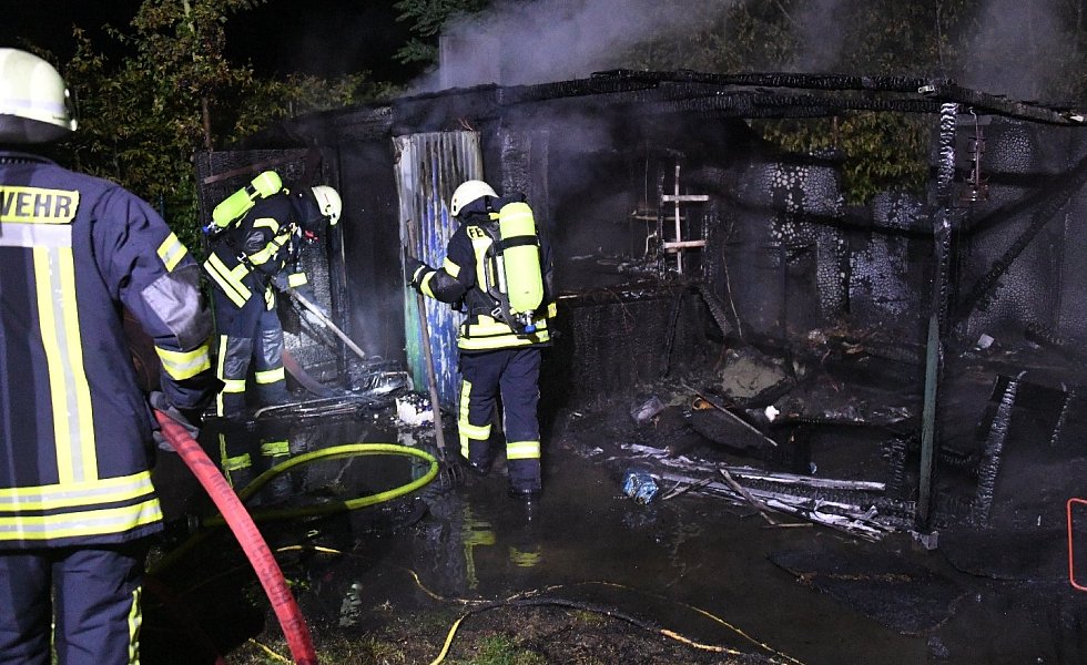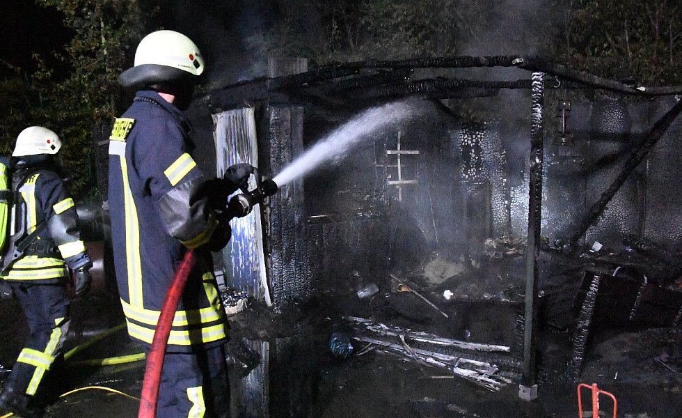 Gütersloh. In einem Schrebergarten an der Oststraße in Gütersloh hat am späten Samstagabend eine Gartenlaube Feuer gefangen. Beim Eintreffen von Polizei und Feuerwehr brannte die hölzerne Gartenlaube in voller Ausdehnung. Durch den Einsatz der Gütersloher Feuerwehr war das Feuer schnell unter Kontrolle und konnte gelöscht werden. Die Gartenlaube samt Inventar wurde durch den Brand stark beschädigt.