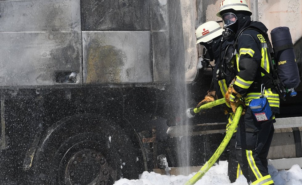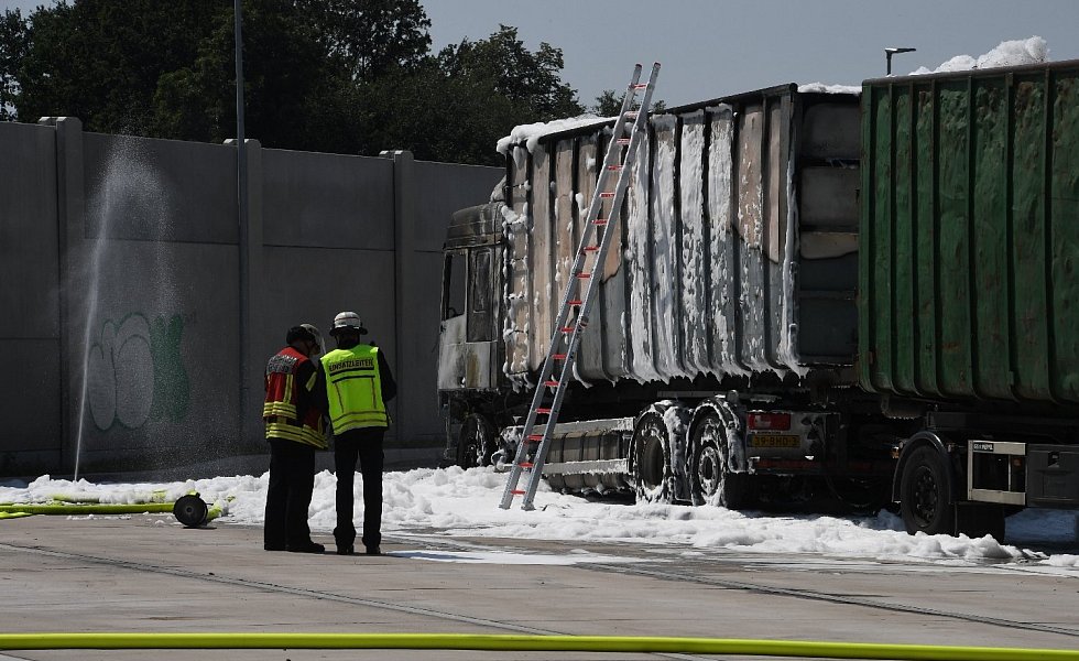 „Aufgrund der Witterung mussten sich bisher acht Kamerden mit Atemschutzgeräten ausrüsten", berichtete Rempe noch während der Löscharbeiten. In den beiden Containern wurde Kunststoff-Recyclingmaterial transportiert, der Container auf dem Maschinenwagen wurde von der Feuerwehr mit Schaummittel bedeckt, um einen nachhaltigen Löscherfolg zu erzielen.