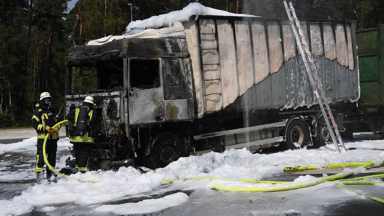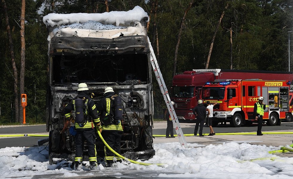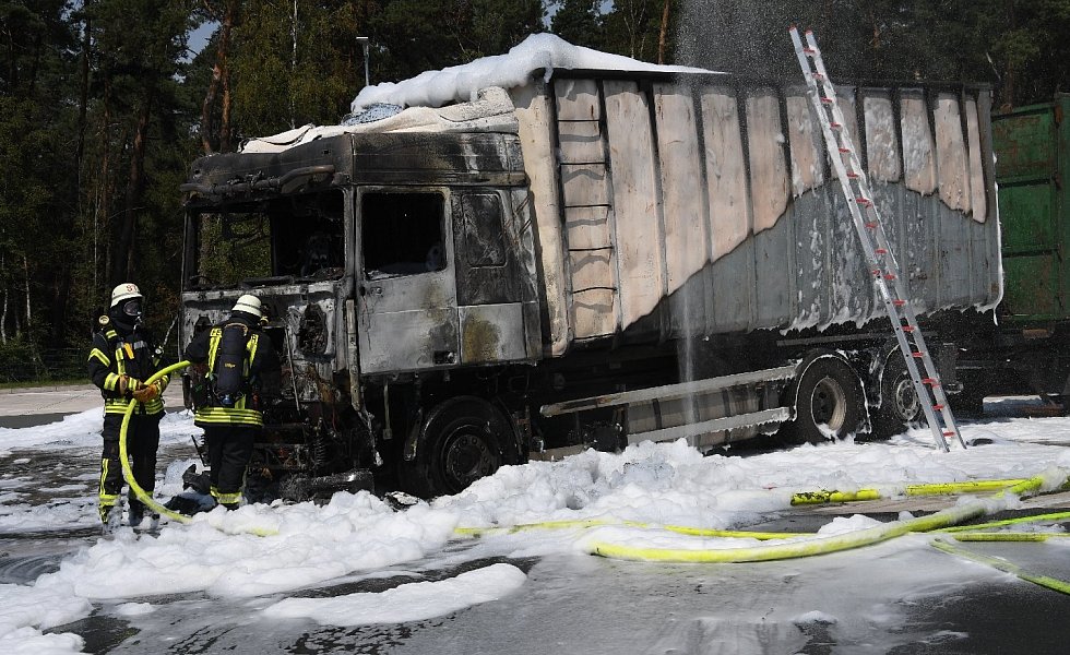 Der Lkw zog zwei große Container, der auf dem Maschinenwagen geriet ebenfalls in Brand. Ein Übergreifen der Flammen auf den Anhänger konnten die rund 40 Feuerwehrleute aus Bielefeld unter Leitung von Maximilian Rempe verhindern.