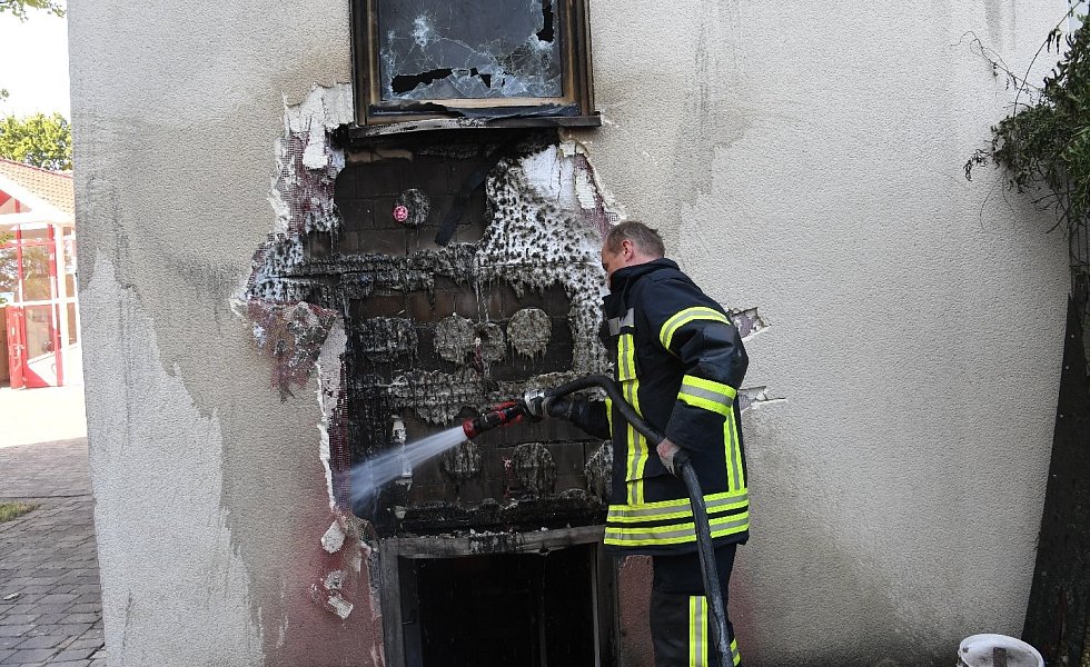 Ferner platzten zwei Fenster durch die enorme Hitze, der Rauch zog in das Gebäude. Die äußere Fassadendämmung wurde außerdem erheblich in Mitleidenschaft gezogen, das Verbundsystem aus Styropor schmolz hinter dem äußeren Anstrich.