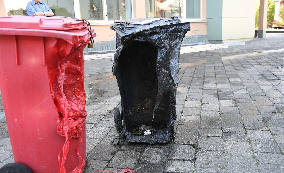 Offenbar war ausbislang ungeklärter Ursache ein Behälter für Restmüll in Brand geraten. Der Behälter stand direkt an dem Gebäude, ebenso weitere für Papier und andere Reststoffe. Zwei kleinere Behälter wurden durch die erhebliche Hitze ebenfalls beschädigt.