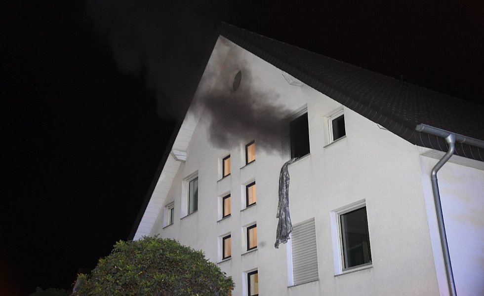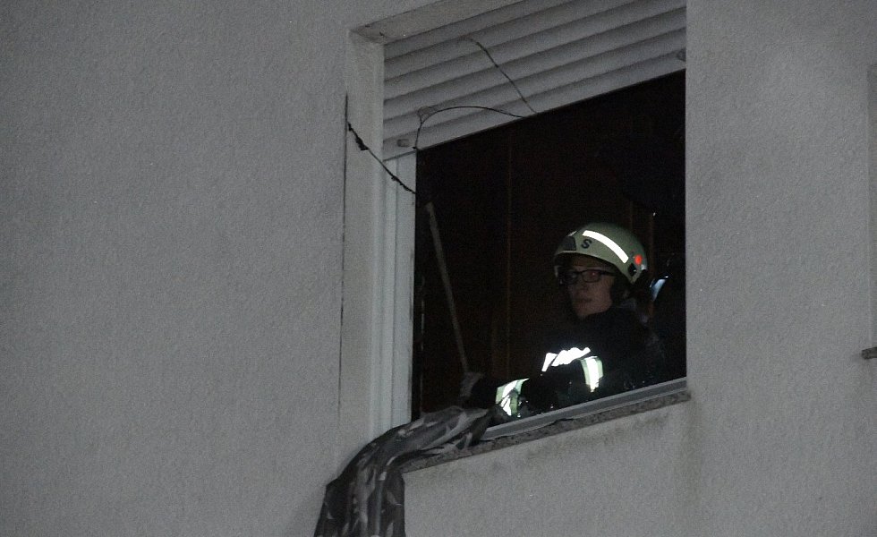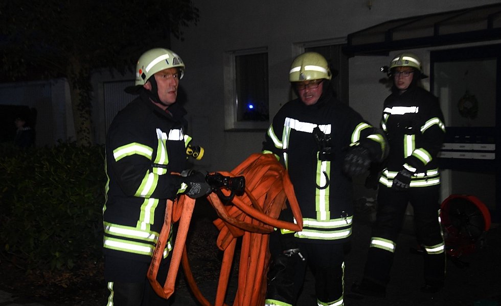 Dichter, schwarzer Rauch drang aus der Wohnung im zweiten Obergeschoss des Sechs-Familienhauses heraus, nachdem die Feuerwehrleute im Korb der Drehleiter die Fensterscheibe zerstört hatten. Die Wohnungstür leistete zunächst massiven Widerstand - sie ließ sich nicht so einfach öffnen, wie es sich die Feuerwehrleute eigentlich gewünscht hätten.
