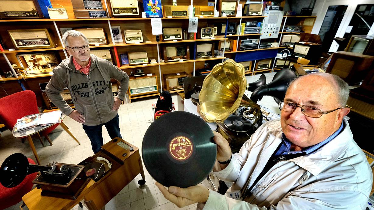 Vom Grammophon zum Schallplattenspieler: Auch diesen Teil der Geschichte präsentieren Klaus Krüger (l.) und Richard Kügeler. | © Andreas Frücht