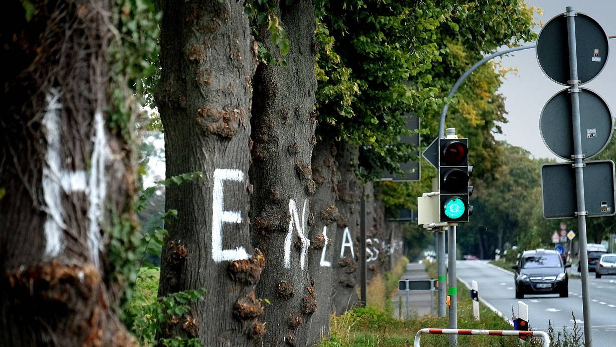 Bäume an der B 61 mit weißer Farbe bemalt - wer steckt dahinter?