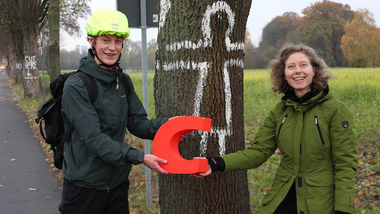 Anette Klee und ihr Mann Ingold wollen damit auf den Erhalt der Bäume aufmerksam machen. Ein Gütersloher CDU-Politiker findet das Vorgehen alles andere als komisch.