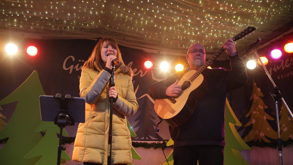 Die aus der TV-Show „The Voice of Germany" bekannte Gütersloherin Madline Wittenbrink stand zur Eröffnung des Weihnachtsmarktes mit dem Verler Gitarristen Jay auf der Bühne am Berliner Platz. | © Max Maschmann