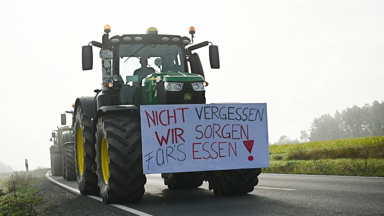 Landwirt Hubertus Winter und seine Kollegen sind mit Schleppern unterwegs. Ihnen geht es um Wertschätzung für die Lebensmittel aus heimischem Anbau.