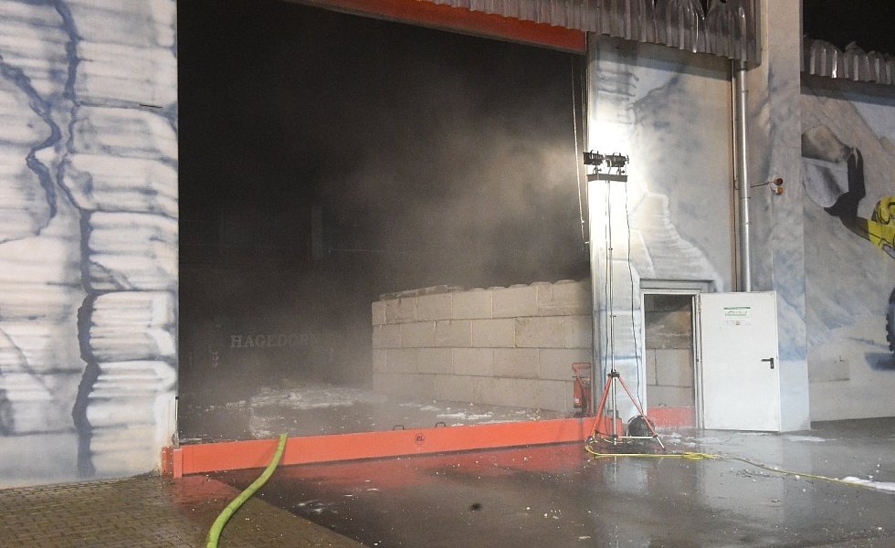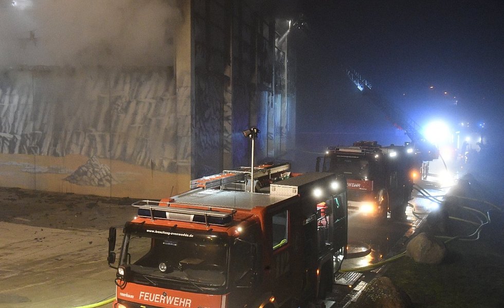Selbst ein hinzugerufener Berechtigter des Unternehmens hätte der Feuerwehr zunächst keine klaren Angaben machen können, so der Branddirektor. Die Feuerwehr war um 22.12 Uhr alarmiert worden - offenbar hatte ein Passant die Flammen im relativ dichten Nebel entdeckt. Als die ersten Kräfte am Einsatzort waren, schlugen die Flammen bereits aus dem Gebäude in den nächtlichen Himmel.