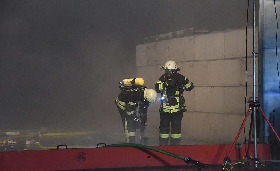 Mit der Baumaschine sollte das Styropor aus der Halle geholt und auf dem rund 50.000 Quadratmeter großen Gelände verteilt und endgültig abgelöscht werden. Aufgrund der starken Rauchentwicklung in der Halle war das aber nicht möglich. Nach Polizeiangaben entstand Schaden in noch nicht bekannter Höhe.
