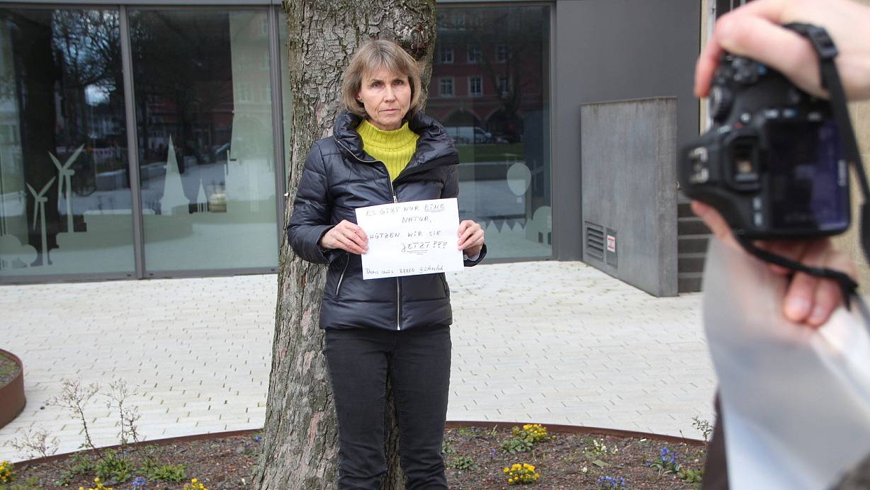 Doris hatte: den Satz „Es gibt nur eine Natur, schützen wir sie jetzt" auf einem Zettel notiert. „Leben ohne Baum? Wohl kaum", reimte Katja. Und Emma machte darauf aufmerksam, wofür sich die Aktivisten nicht zuletzt einsetzen: „Für meine Zukunft".