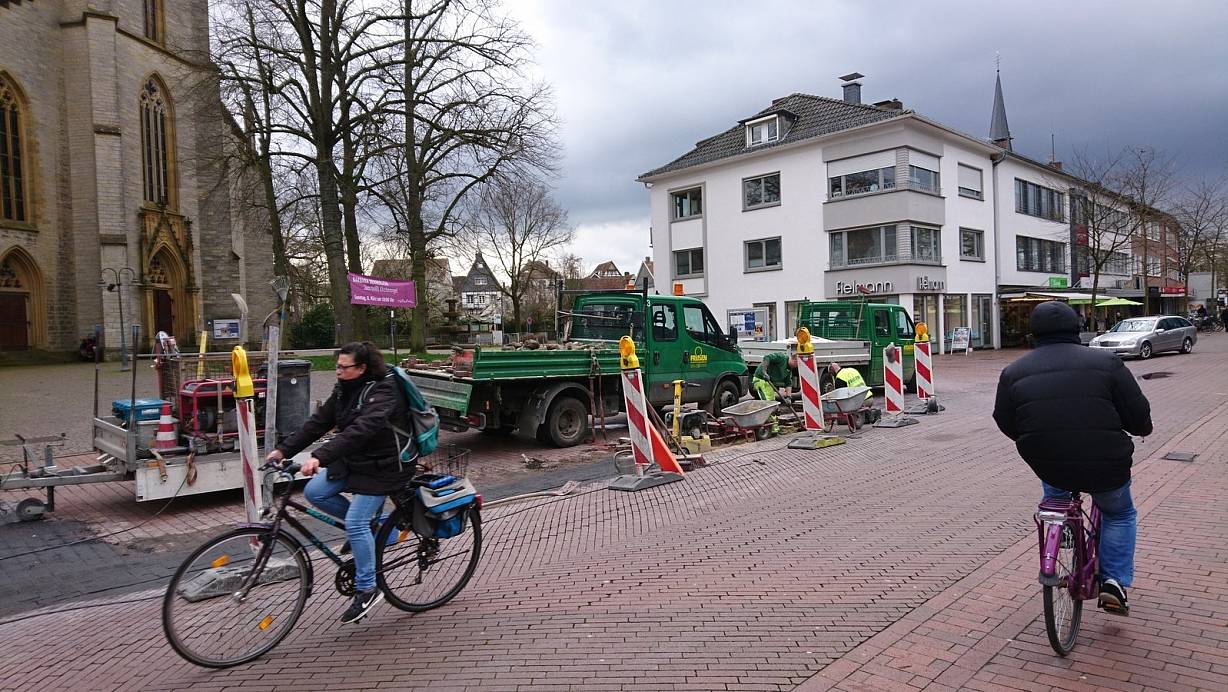 An der Berliner Straße vor der Martin-Luther-Kirche wurde das Pflaster ausgebessert. | © Rainer Holzkamp
