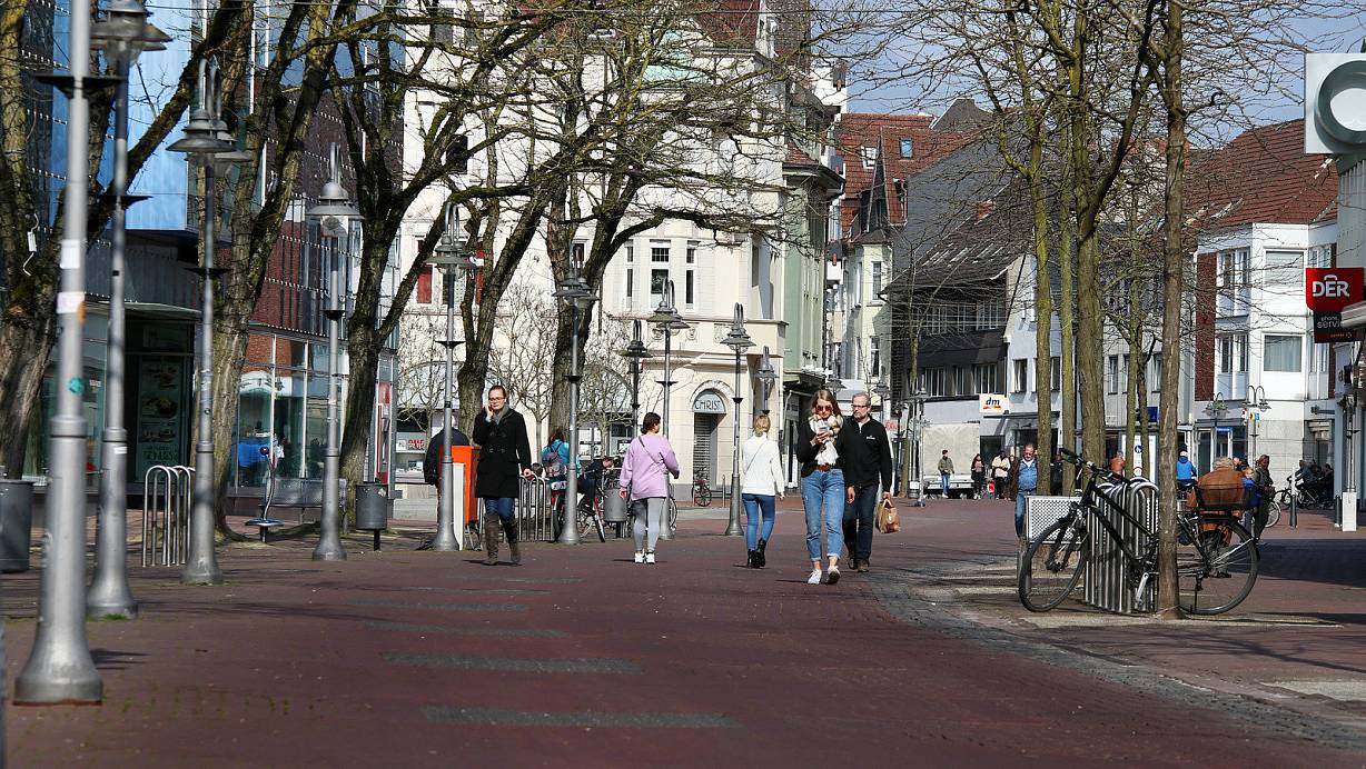 Nur wenige Menschen laufen am Mittwoch durch die Gütersloher Innenstadt - viel zu sehen oder zu machen gibt es nicht mehr. | © Patrick Menzel