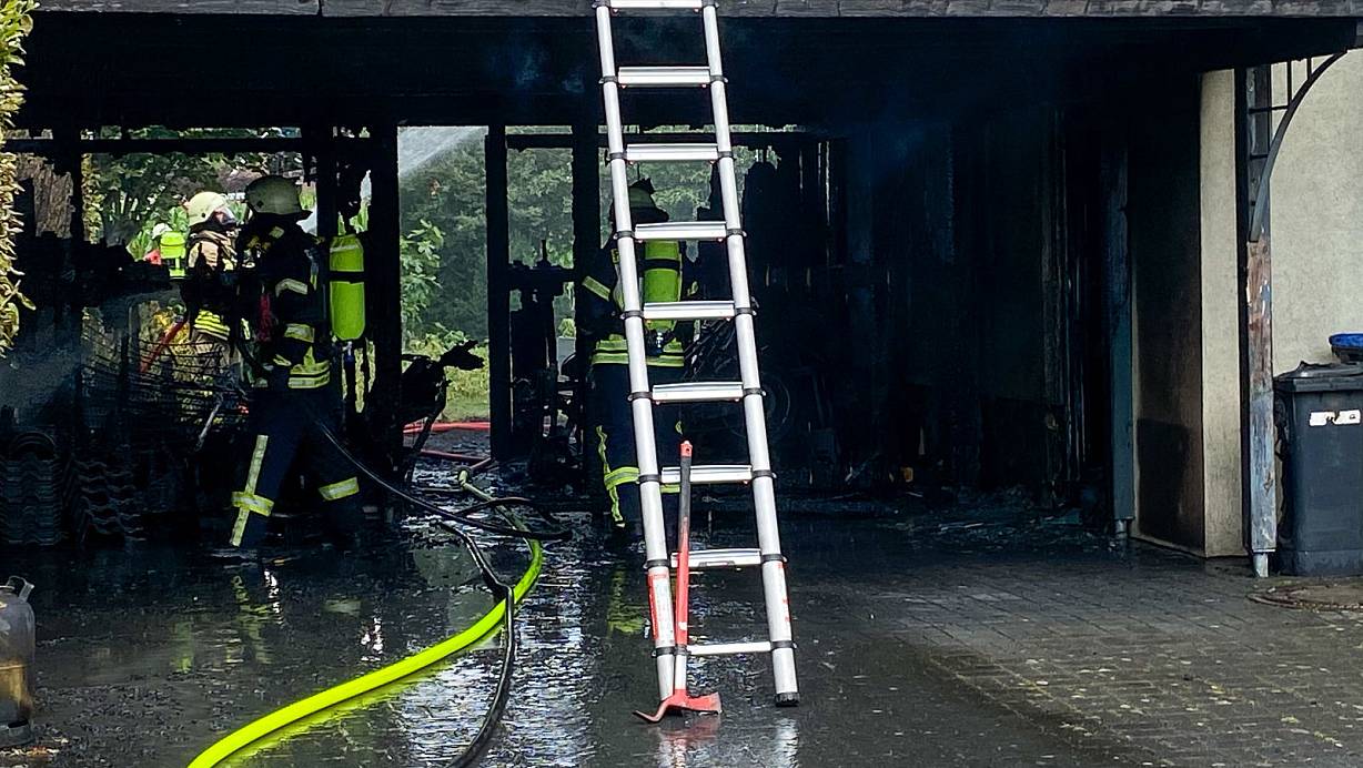 Mithilfe der Drehleiter kontrollierte die Feuerwehr das Dach auf Glutnester. Der Einsatz dauerte rund zwei Stunden. Das Carport brannte komplett aus, das angrenzende Haus sowie die Hecke wurden laut Polizei nicht unerheblich beschädigt. Es entstand Sachschaden in Höhe von mehreren zehntausend Euro. Der Brandort wurde beschlagnahmt, die polizeilichen Ermittlungen zur Brandursache dauern an.
