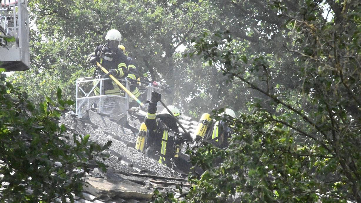 Einem Bewohner war im Treppenhaus Brandgeruch aufgefallen. Beim Treffen der Feuerwehr schlugen die Flammen teils aus der Dachhaut.