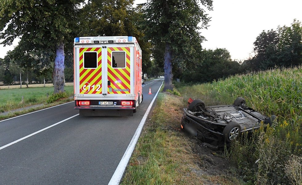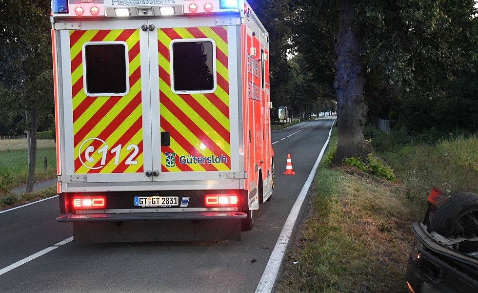 Der 26-Jährige war mit seinem VW Polo nach ersten Ermittlungen der Polizei um 5.19 Uhr auf der Avenwedder Straße aus Richtung Isselhorster Straße kommend gen Friedrichsdorf unterwegs. Der Kleinwagen geriet auf die Grünfläche und überschlug sich. Ein Autofahrer entdeckte den verunfallten Wagen neben der Fahrbahn, wählte den Notruf und leistete Erste Hilfe.