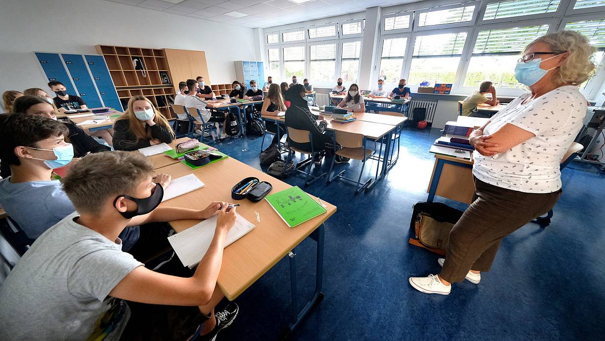 Wie in dieser Klasse an der Janusz-Korczak-Gesamtschule müssen die Schüler auch während des Unterrichts eine Schutzmaske tragen.  | © Andreas Frücht