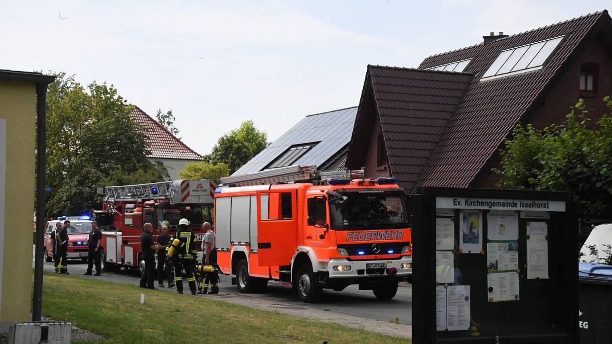 Nach dem Notruf bei der Kreisleitstelle der Feuerwehr in Gütersloh wurden die Kräfte der Berufsfeuerwehr alarmiert, ferner die des Löschzuges Isselhorst. Nachdem sich die Feuerwehrleute davon überzeugt hatten, dass alle Personen unverletzt das Gebäude verlassen hatten, suchten zwei Feuerwehrleute unter Atemschutz die Ursache und wurden im Keller fündig.