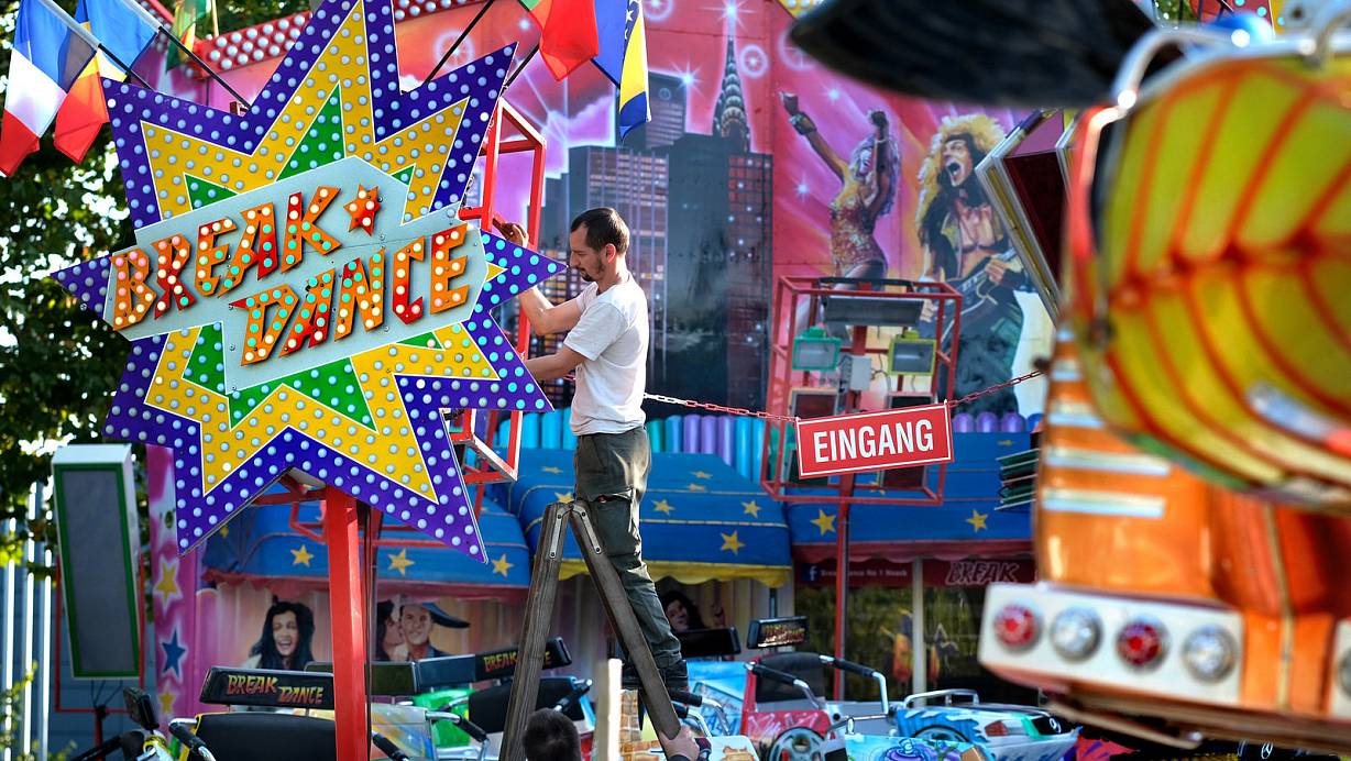 Seit rund 20 Jahren ist das Fahrgeschäft Break Dance Stammgast in Gütersloh. Beim Aufbau und Betrieb der Fahrgeschäfte müssen die Hygiene-Vorgaben beachtet werden. | © Andreas Frücht
