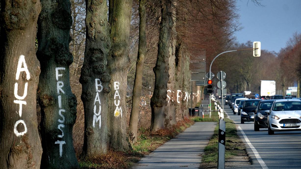 Im vergangenen Jahr hatten Umweltschützer die Bäume entlang der B61 mit weißer Farbe bemalt, um gegen den geplanten Ausbau der Bundesstraße zu protestieren. | © Andreas Frücht