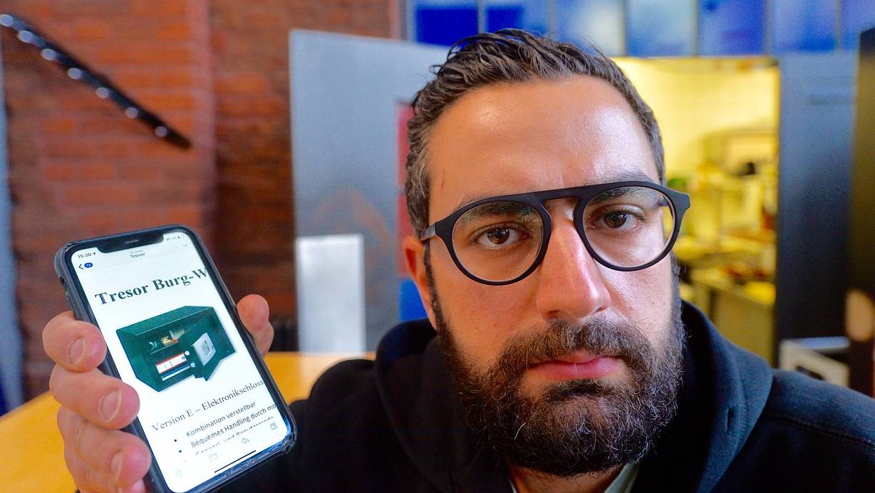 Gastronom Zaven Duman zeigt ein Foto des gestohlenen Tresors auf seinem Handy. | © Wolfgang Wotke