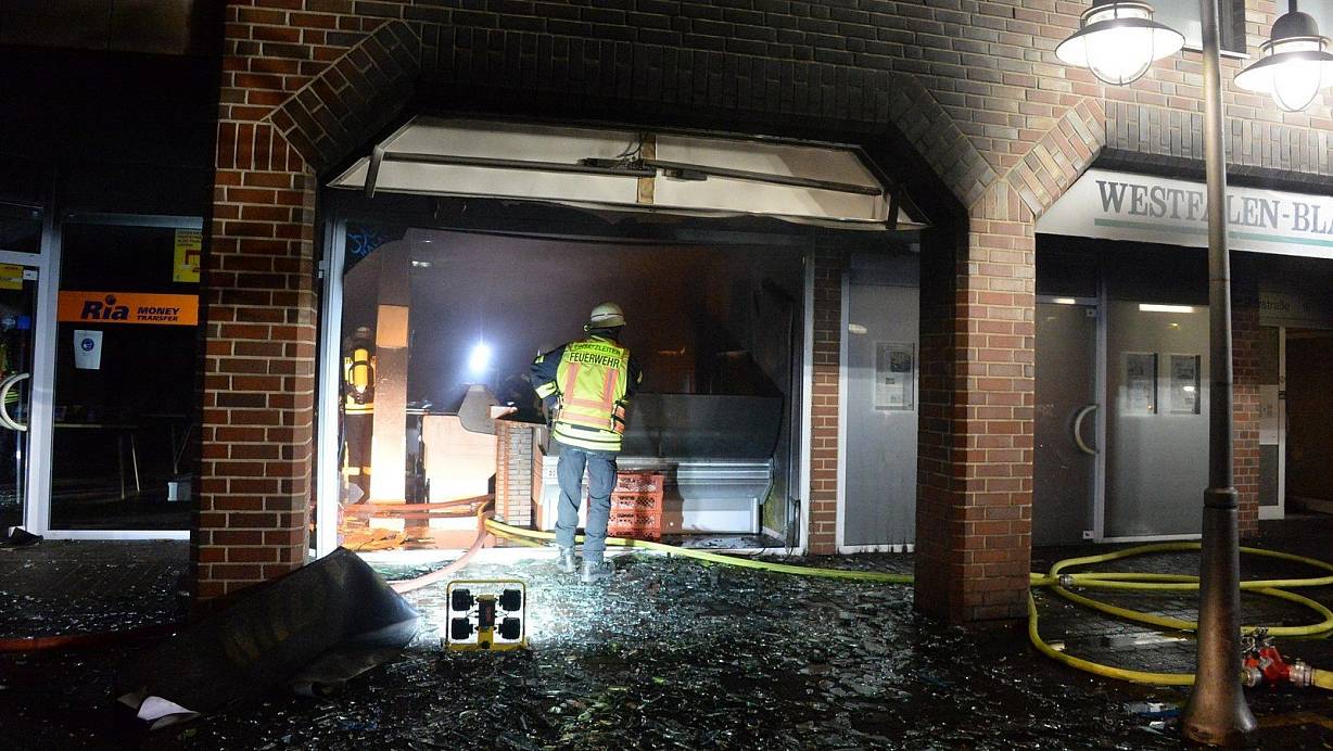 Zunächst rückten die Kräfte der Berufsfeuerwehr sowie die des Löschzuges Gütersloh aus, wenig später wurde noch der Löschzug Avenwedde alarmiert. Offenbar hatte sich der Brand in den Räumen über eine längere Zeit entwickelt, die zerborstene Scheibe war mit schwarzem Ruß bedeckt. Die Fassade wurde durch die starke Hitze des freigesetzten Qualms erheblich in Mitleidenschaft gezogen. Durch die Wucht der Durchzündung flogen die Glasscherben meterweit über die Straße. Glücklicherweise waren zu diesem Zeitpunkt keine Fußgänger in der stark frequentierten, verkehrsberuhigten Innenstadtstraße unterwegs.