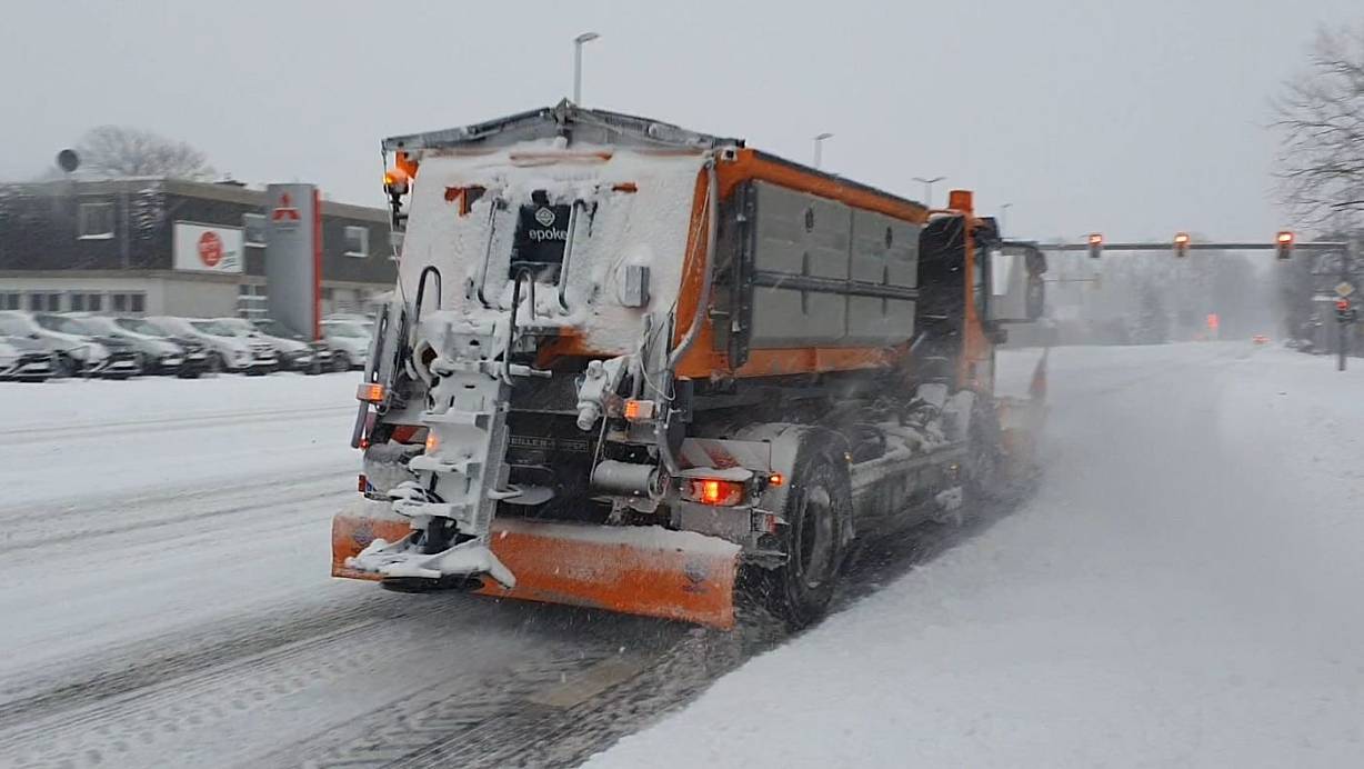 Die Räumfahrzeuge befreien unermüdlich die Straßen vom Schnee, so wie hier in Gütersloh auf der Berliner Straße. | © Irja Most