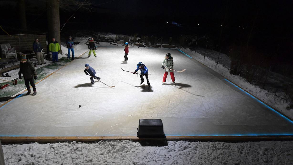 Eine Hofgemeinschaft baut sich eine 10 mal 16 Meter große Eisbahn in den Garten - die einzige derzeit geöffnete Eisbahn in OWL. Dort spielen die Kinder jetzt Eishockey und zwar auch, wenn es schon dunkel ist. Denn es gibt sogar Flutlicht.