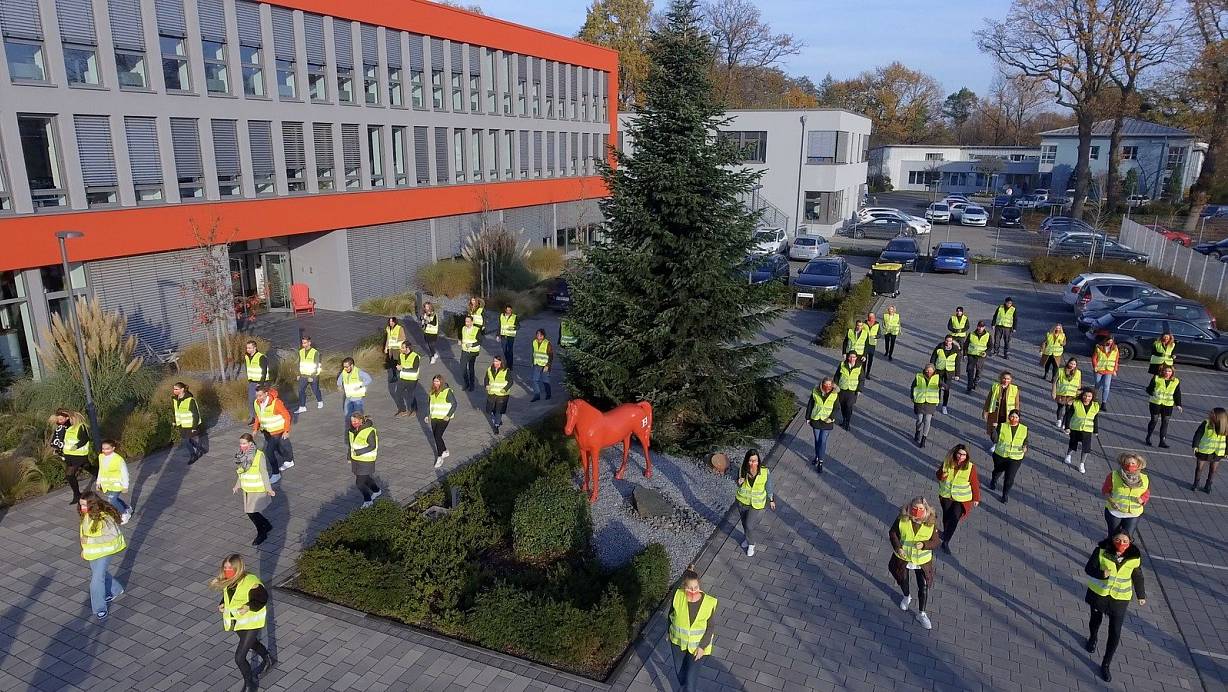 Die Aktion auf dem Firmenparkplatz in Gütersloh wurde mit einer Drohne gefilmt. | © Hagedorn