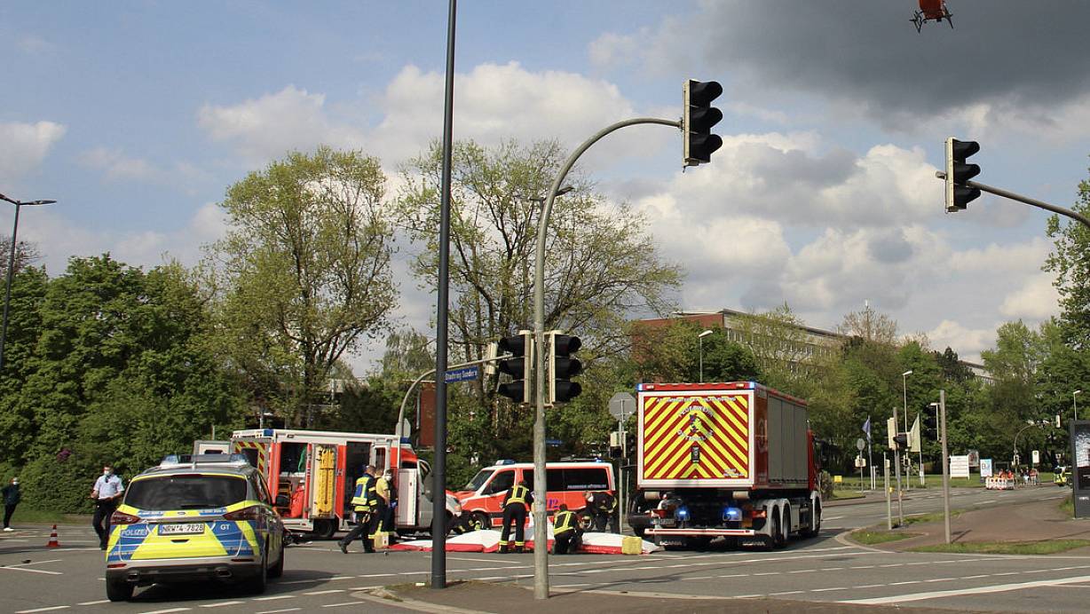 Das Motorrad erlitt Totalschaden, der Peugeot wurde erheblich beschädigt. Für die Dauer der Unfallaufnahme blieb die Kreuzung Carl-Bertelsmann-Straße komplett gesperrt.