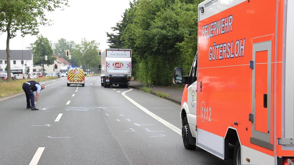 Ein Mann läuft plötzlich aus einem Gebüsch auf den Gütersloher Westring. Trotz sofortiger Vollbremsung kann ein Lkw-Fahrer den Zusammenstoß mit dem 45-Jährigen nicht mehr verhindern.