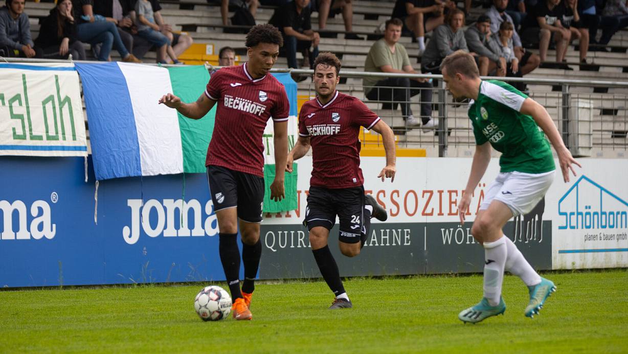 Die Gastgeber hatten am Montag ihre erste Trainingseinheit absolviert, die Gäste, die bereits in zwölf Tagen ins Ligageschehen einsteigen, kamen mit der Referenz von einem Sieg (DSC Arminia Bielefeld) und einem Unentschieden (VfL Bochum) gegen zwei Bundesligisten. Gemessen an dieser Konstellation bekamen die gut 1.500 Zuschauer ein recht ausgeglichenes Fußballspiel geboten.