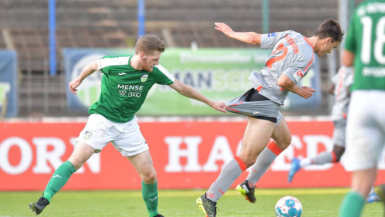 Im Freundschaftsspiel liegt der Oberligist schon nach drei Minuten 0:2 zurück. Im gemischten Team des Zweitligaklubs überzeugt ein 16-Jähriger Innenverteidiger.