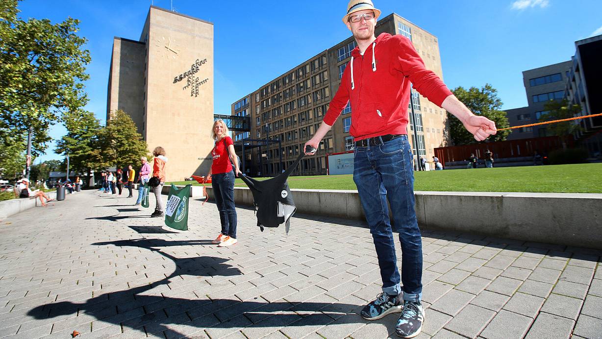 Auch entlang des Gütersloher Rathauses schlängelte sich die Rettungskette am Samstagmittag. | © Patrick Menzel