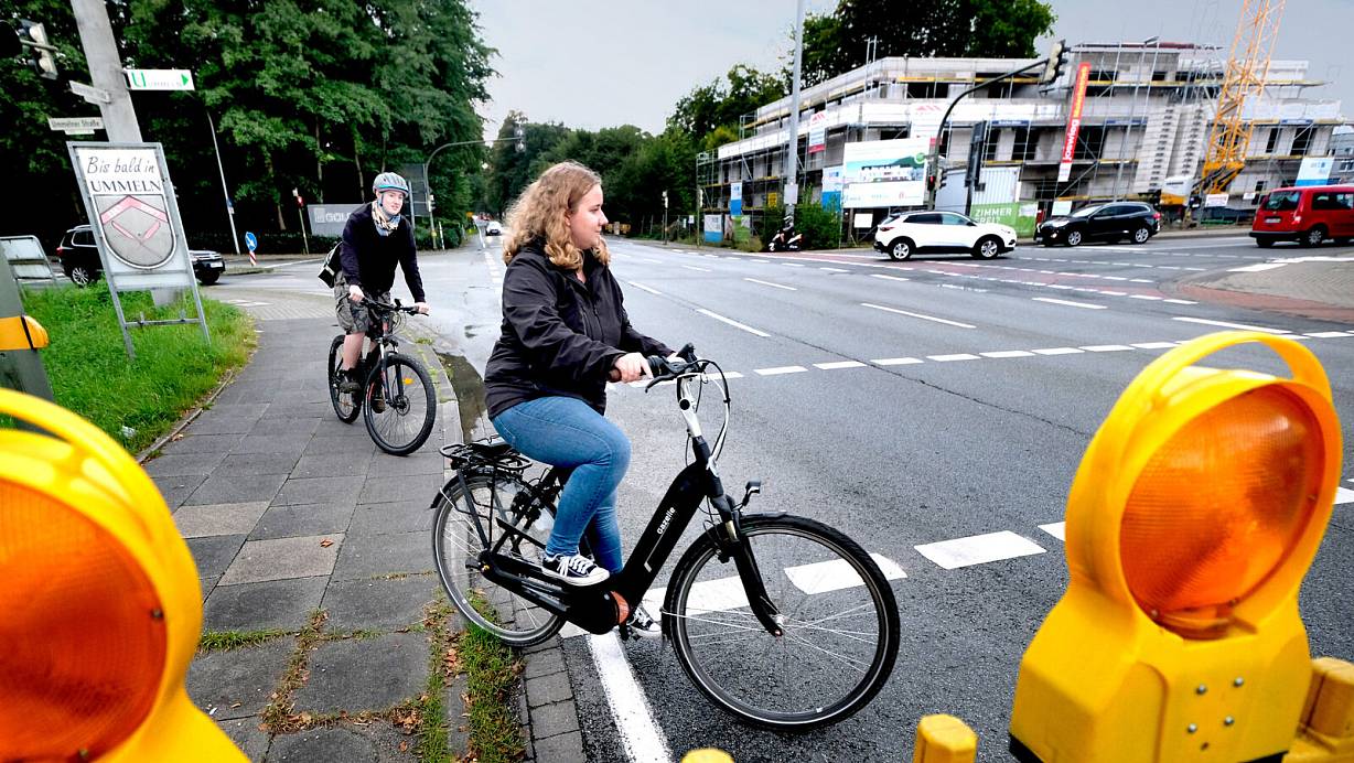 NW-Volontärin Celina Allard mit dem E-Bike auf dem Weg nach Bielefeld. | © Andreas Frücht