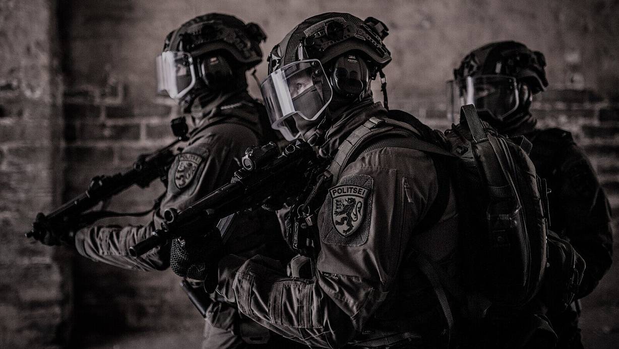 Mit Kopfschutz aus Gütersloh ausgestattet: Ein Spezialteam der Polizei aus Estland. | © Reelika Riimand