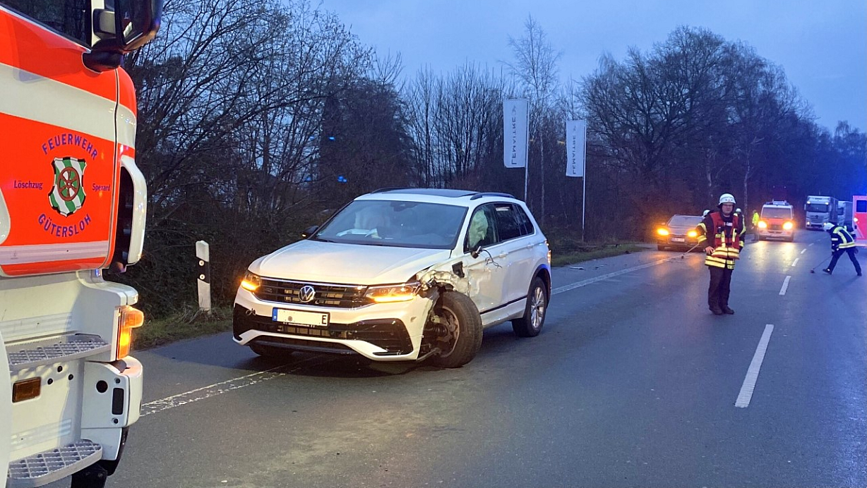 Ein Autofahrer ist am Mittwoch bei einem Unfall auf der Verler Straße verletzt worden. Besondere Herausforderung für die Feuerwehr: Ein Fahrzeug war elektrobetrieben.