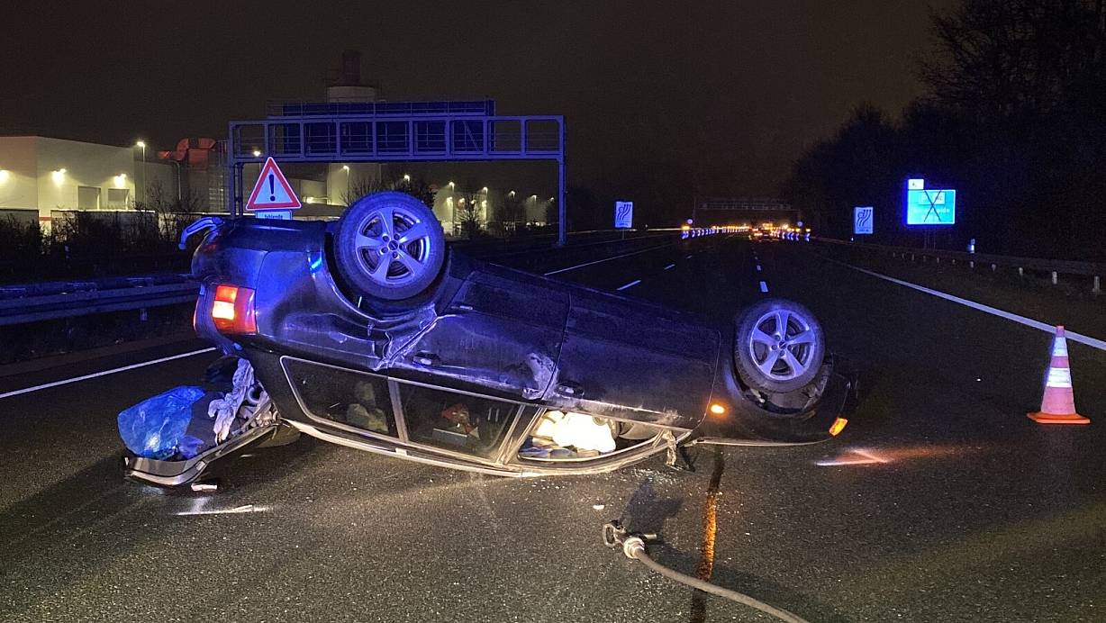 Der Fahrer eines Audi wurde leicht verletzt nachdem sein Fahrzeug durch den Unfall auf dem Dach landete und noch ungefähr 150 Meter über die Fahrbahn rutschte. | © Thorsten Heß