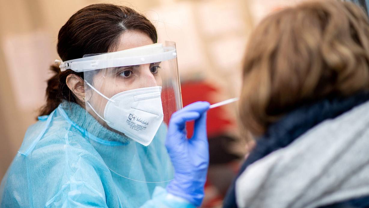 Eine Mitarbeiterin einer Teststation in der Innenstadt nimmt einen Abstrich von einer Frau. In Niedersachsen gelten in vielen Bereichen verschärfte Corona-Regeln. | © picture alliance/dpa