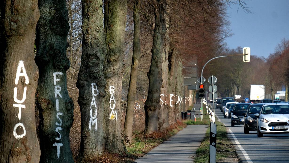 Klimaschützerinnen und Klimaschützer hatten die Bäume bemalt aus Protest gegen eine drohende Abholzung. | © Andreas Frücht