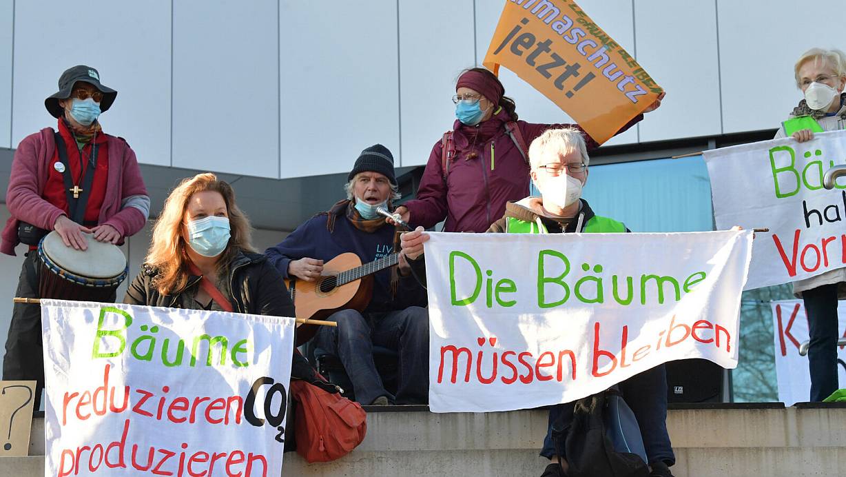Vor einem Jahr: Umweltschützer demonstrierten vor einer Gremiensitzung in der Stadthalle für den Erhalt der Bäume. | © Dünhölter