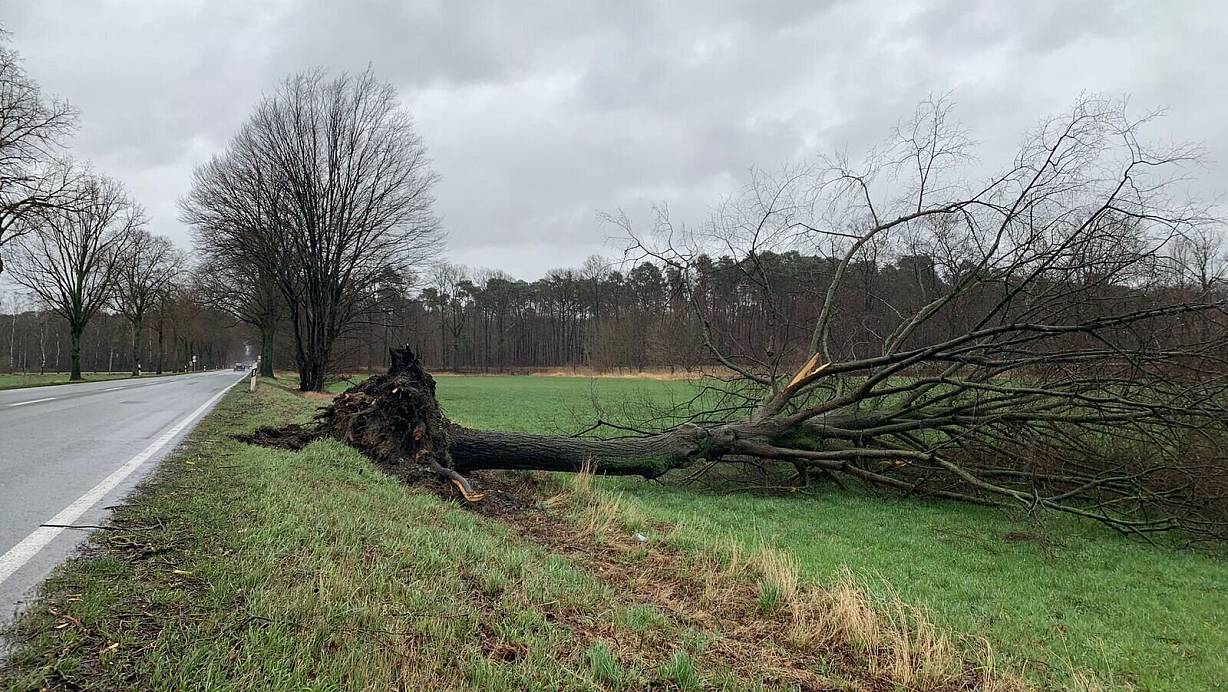 An der B61 zwischen Rheda-Wiedenbrück und Gütersloh hat der Sturm in Fahrtrichtung Gütersloh einen Baum entwurzelt. | © Lena Vanessa Niewald